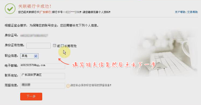 验证成功,自动完成开户