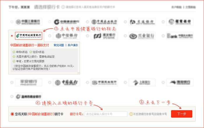 【中国邮政储蓄银行】关联银行卡演示