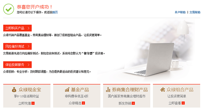 验证成功,自动完成开户