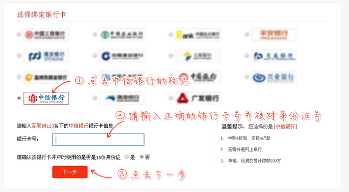 【中信银行】关联银行卡演示